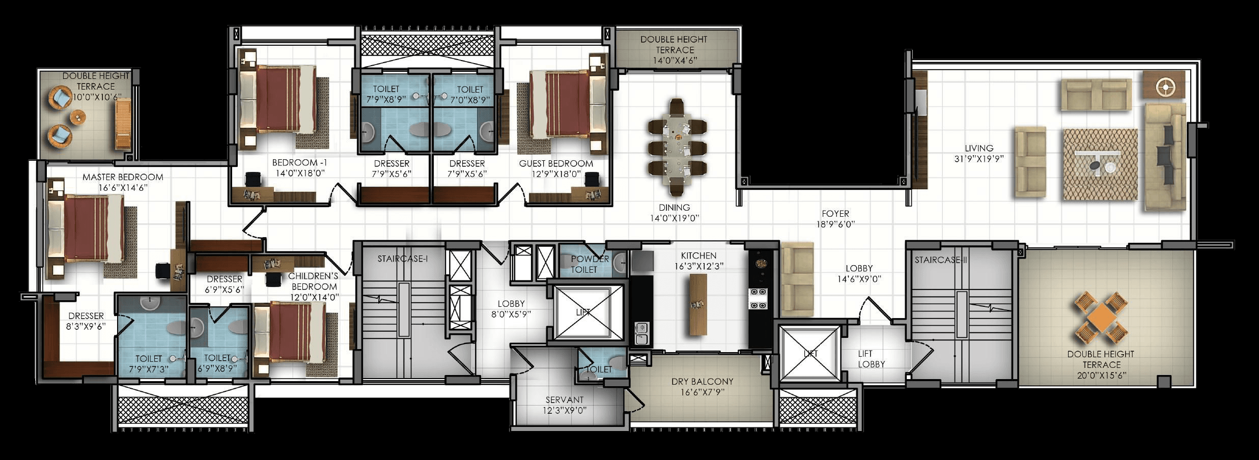 Reign supreme in your palace. Let life pamper you every day. Let your abode reflect your timeless personal style! Only 9 families will inhabit Mantri Emporio, a place where aristocracy is a way of life. Only one flat per floor upholds privacy and exclusivity. The 4 BHKs range from 441.3 Sq.mts (4750 sq. ft) to 452.4 sq. mts (4870 sq. ft.) and are true testaments to king-size living. Choose a home which makes your wish its command!